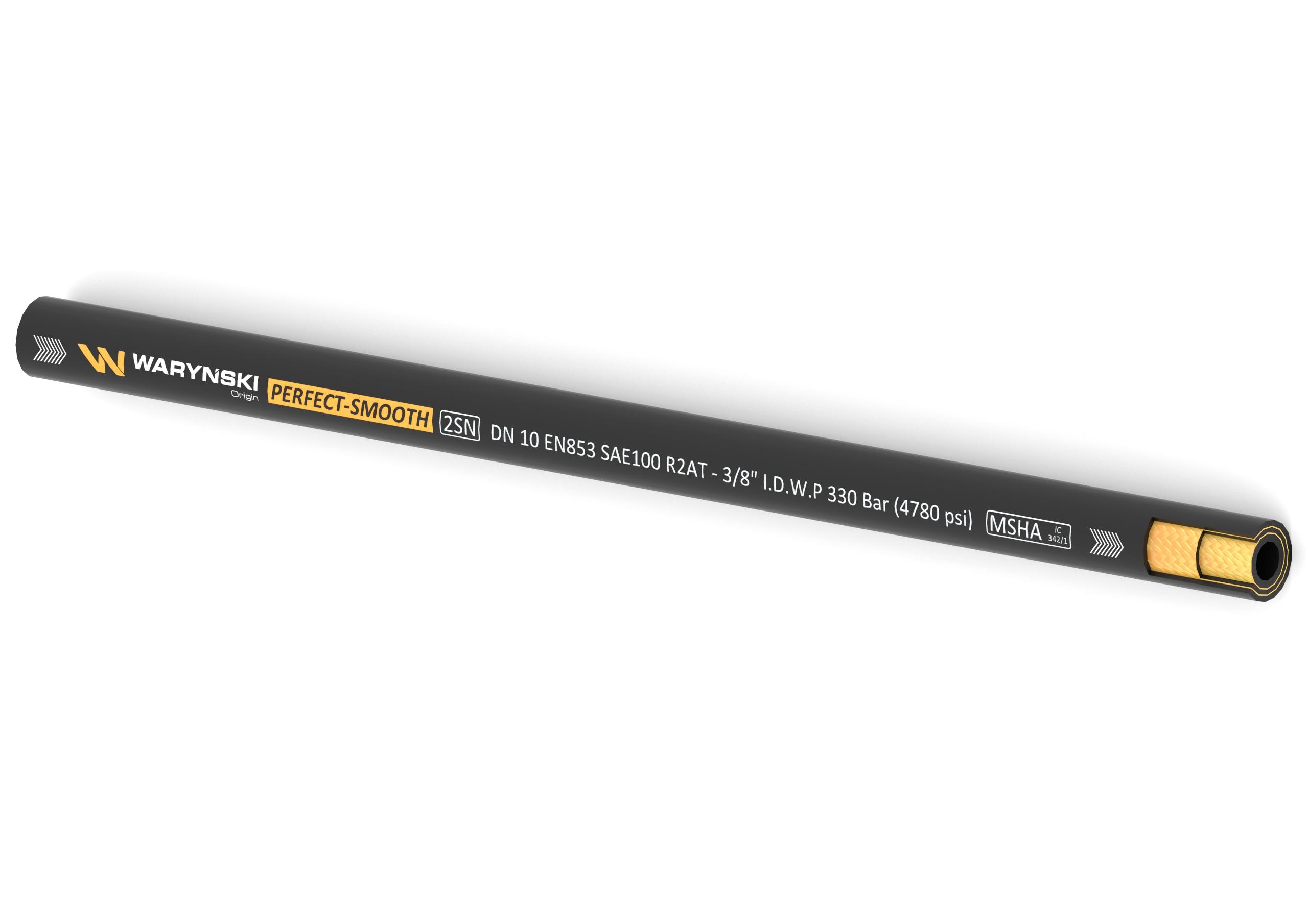 Wąż hydrauliczny o gładkiej wzmocnionej powierzchni do zakuwania PERFECT-SMOOTH 2SN DN10 2-oplotowy 330 Bar Waryński EN853 - elastyczny, wielofunkcyjny wąż wzmocniony podwójnym oplotem z drutu stalowego.